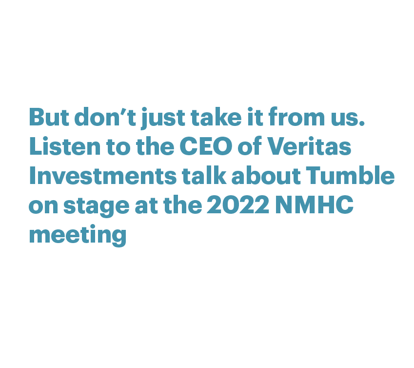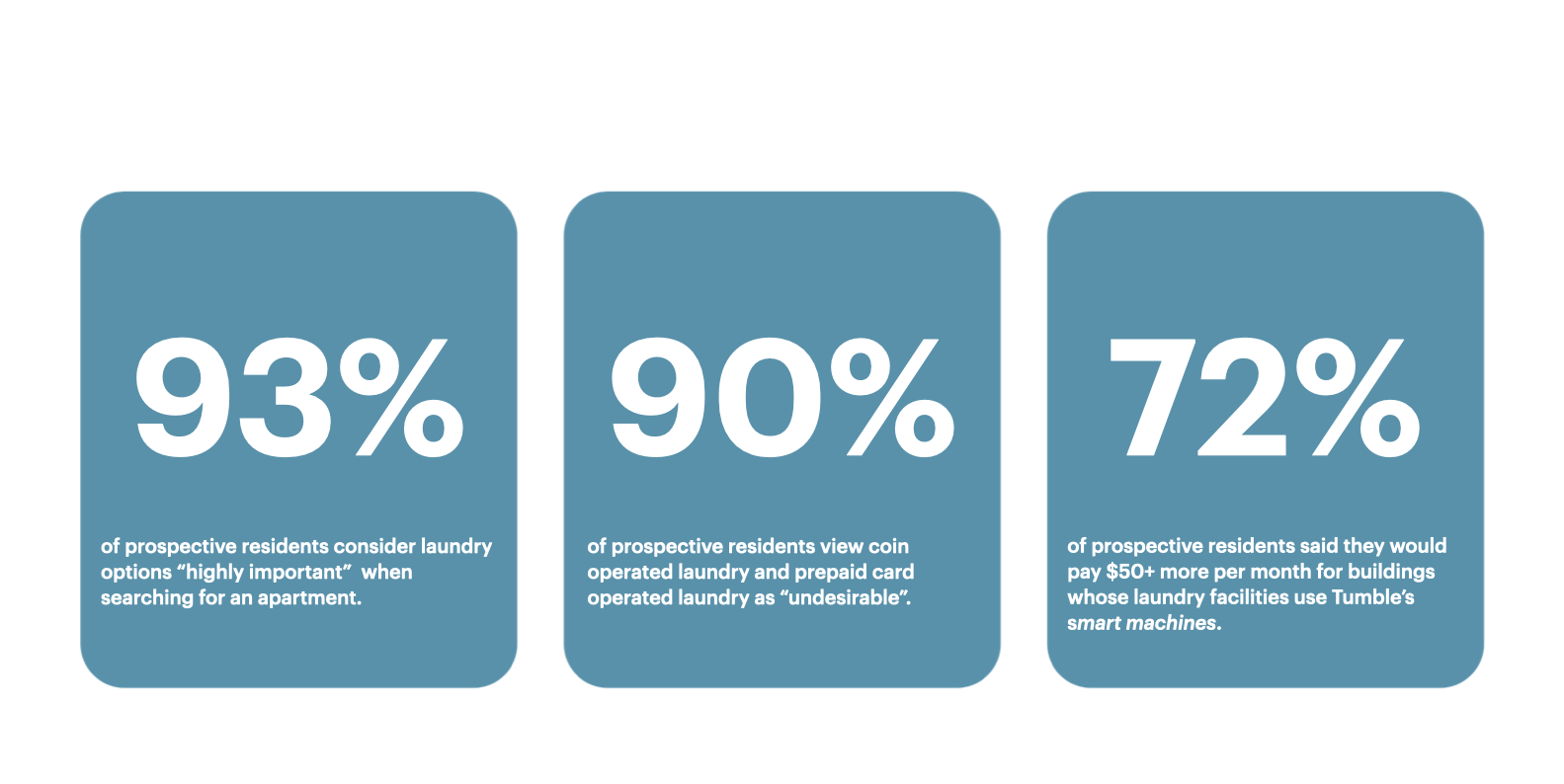 All machines utilize Tumble’s proprietary connected system with cashless payment. With signing of a 5 year or more term, Tumble will include it's upcoming resident insights platform included in this package.